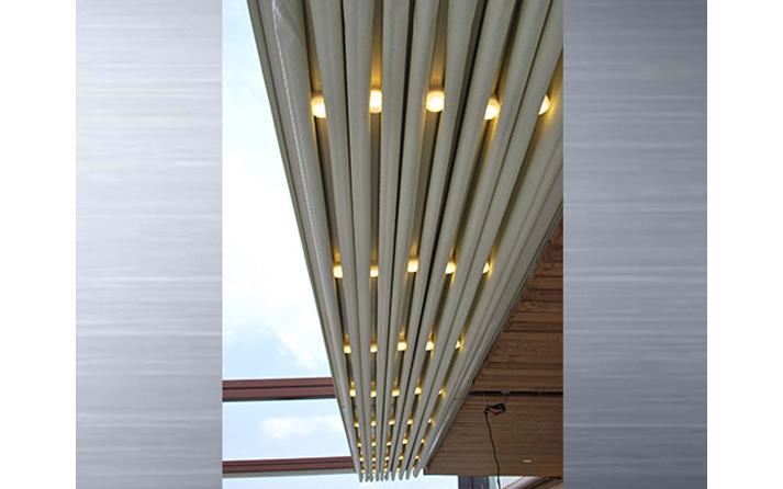 جزء دوم از سقف جمع شونده روف گاردن، پوشش سقف است. یکی از گزینههای مهم برای پوشش سقف متحرک روف گاردن، ورقهای پلی کربنات، پارچههای پی وی سی و شیشههای لمینت هستند.